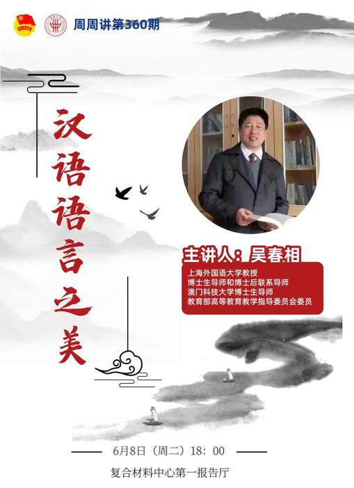 講座簡介:漢語博大精深,美在聽得見的鏗鏘音韻,美在運用時的千變萬化,更美在五千年的歷史底蘊。講座結合大量示例,從韻律、語用、修辭、文化等多個角度,對漢語的“美”進行解讀。