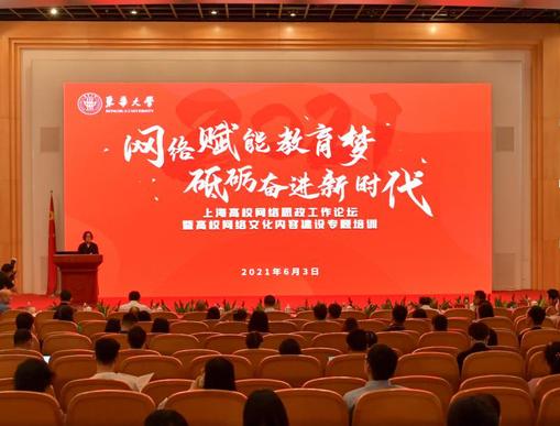 6月3日,“網絡賦能教育夢,砥礪奮進新時代”2021年上海高校網絡思政工作論壇暨高校網絡文化內容建設專題培訓在我校松江校區舉辦。中共上海市教育衛生工作委員會副書記、上海市教育委員會副主任閔輝,中國教育戰略發展學會思想道德建設專業委員會理事長、教育部思政司原司長、北京師范大學思想政治工作研究院院長馮剛,東華大學黨委副書記劉淑慧出席活動。上海市教衛工作黨委相關部處負責人、上海易班企業發展有限公司負責人,相關高校宣傳、學工部門負責人、論壇征文獲獎代表及廣大網絡思政工作師生骨干等300余人參加論壇。
