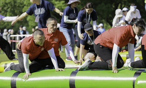 啟動儀式后,我校來自教職工健身協會的10位教職工在校工會常務副主席陸湘群的帶領下,按照指定路線到達各紅色打卡點,體驗長征精神,汲取前進力量,順利完成健步走任務。當天下午,健身嘉年華趣味運動會合力跳長繩、一投定乾坤、同心齊鼓舞、鎖定新目標、奮楫同舟進五個項目開賽。我?;瘜W化工與生物工程學院工會、體育部工會、后勤集團工會和教職工籃球協會等組成的近30位教職工代表學校參賽,經過賽前為期兩周的緊張訓練,最終在比賽中獲得一投定乾坤冠軍、鎖定新目標亞軍、奮楫同舟進第五名。