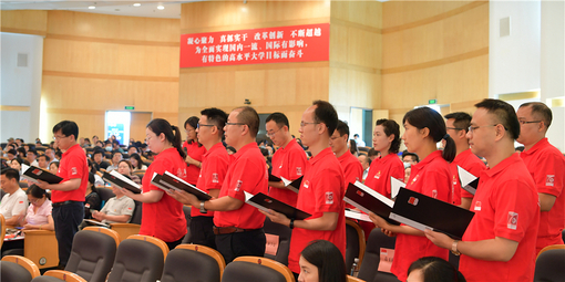 會議最后,劉承功帶領全場黨員師生共同重溫入黨誓詞,號召各級黨組織和廣大師生黨員回望初心使命、永葆政治本色、提振奮斗精神,共同譜寫“奮進東華”新篇章!