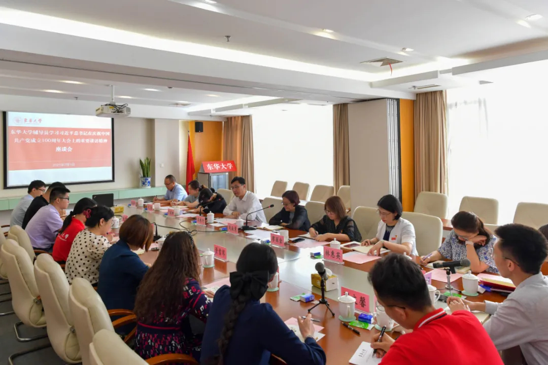輔導(dǎo)員學(xué)習(xí)習(xí)近平總書記在慶祝中國共產(chǎn)黨成立100周年大會(huì)上的重要講話精神座談會(huì)同期舉行。黨委書記劉承功、黨委副書記劉淑慧出席。學(xué)院黨委副書記代表及一線輔導(dǎo)員代表圍繞“落實(shí)立德樹人根本任務(wù)”“開展好面向?qū)W生的黨史學(xué)習(xí)教育”“思政教育助力學(xué)校‘雙一流’建設(shè)和‘十四五’發(fā)展”等踴躍發(fā)言,紛紛表示要深入學(xué)習(xí)習(xí)近平總書記重要講話精神,以高度的政治責(zé)任感和使命感,在鑄魂育人的思政教育工作崗位上做出新的更大貢獻(xiàn)。