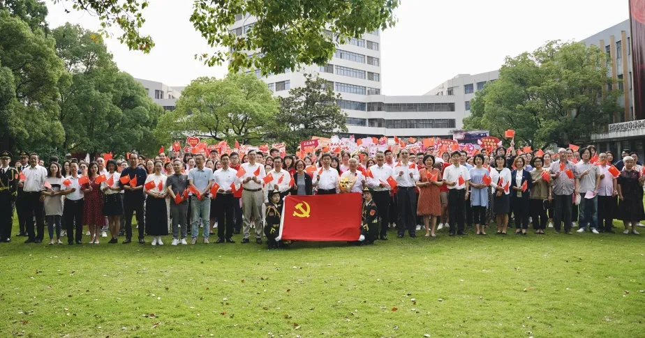 晨光初曦,東華校園微風(fēng)輕飏、紅旗漫卷,我校慶祝中國共產(chǎn)黨成立100周年升旗儀式在兩校區(qū)同步舉行,上千名師生揮動(dòng)鮮艷的黨旗,在晨曦中向黨深情告白。“光榮在黨50年”紀(jì)念章獲得者、我校退休教師賀善侃、梁方義,與00后青年學(xué)生黨員從不同黨齡、不同經(jīng)歷分享與中國共產(chǎn)黨的故事,并帶領(lǐng)全體黨員重溫入黨誓詞,完成兩代人的信仰對(duì)話。100位東華學(xué)子創(chuàng)意排列成“100”字樣的隊(duì)形,退伍大學(xué)生代表帶領(lǐng)全場(chǎng)高唱《沒有共產(chǎn)黨就沒有新中國》,為黨的100歲生日獻(xiàn)上一份特殊的生日禮物。