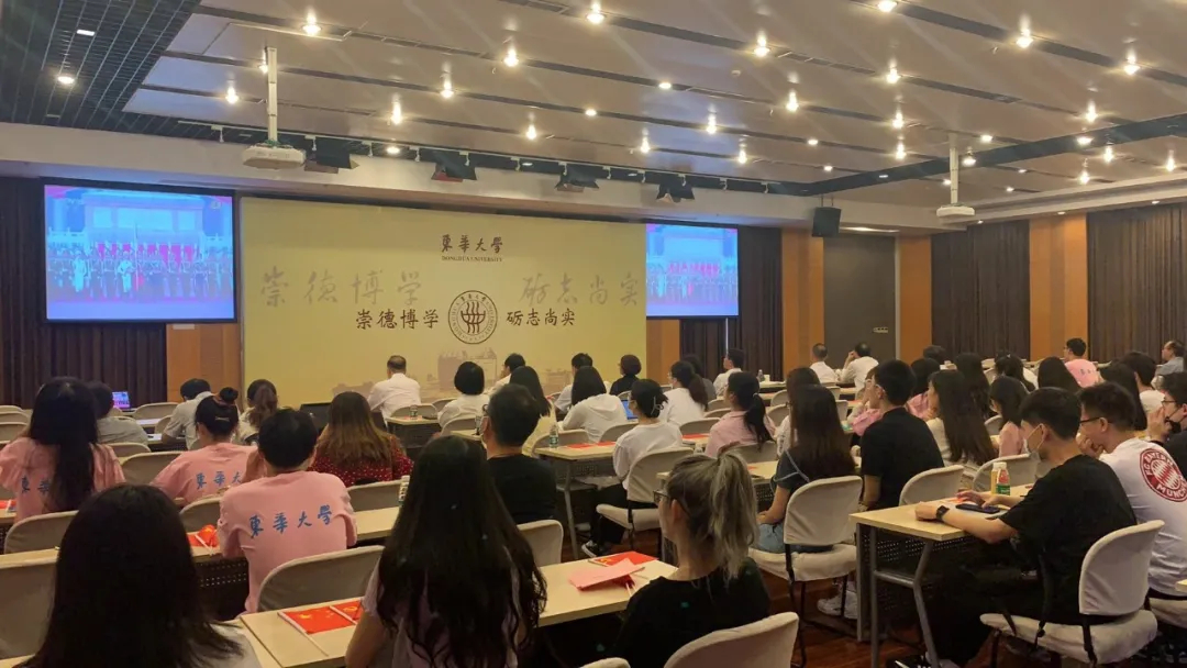 晨光初曦,東華校園微風輕飏、紅旗漫卷,我校慶祝中國共產黨成立100周年升旗儀式在兩校區同步舉行,上千名師生揮動鮮艷的黨旗,在晨曦中向黨深情告白。“光榮在黨50年”紀念章獲得者、我校退休教師賀善侃、梁方義,與00后青年學生黨員從不同黨齡、不同經歷分享與中國共產黨的故事,并帶領全體黨員重溫入黨誓詞,完成兩代人的信仰對話。100位東華學子創意排列成“100”字樣的隊形,退伍大學生代表帶領全場高唱《沒有共產黨就沒有新中國》,為黨的100歲生日獻上一份特殊的生日禮物。