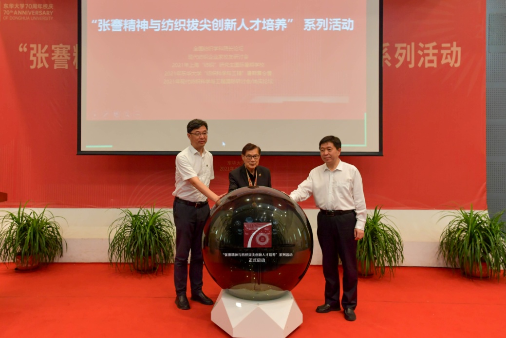 7月8日,東華大學(xué)70周年校慶倒計(jì)時(shí)100天系列活動(dòng)在松江校區(qū)舉行。全國(guó)政協(xié)原常委、全國(guó)工商聯(lián)原常務(wù)副主席張緒武,中國(guó)紡織工程學(xué)會(huì)理事長(zhǎng)伏廣偉,中國(guó)紡織服裝教育學(xué)會(huì)執(zhí)行會(huì)長(zhǎng)倪陽(yáng)生,上海市學(xué)位辦主任束金龍,校領(lǐng)導(dǎo)劉承功、俞建勇、劉淑慧、陳革、舒慧生、李煒以及兄弟高校代表、校友企業(yè)家協(xié)會(huì)理事代表、師生代表等出席系列活動(dòng)。