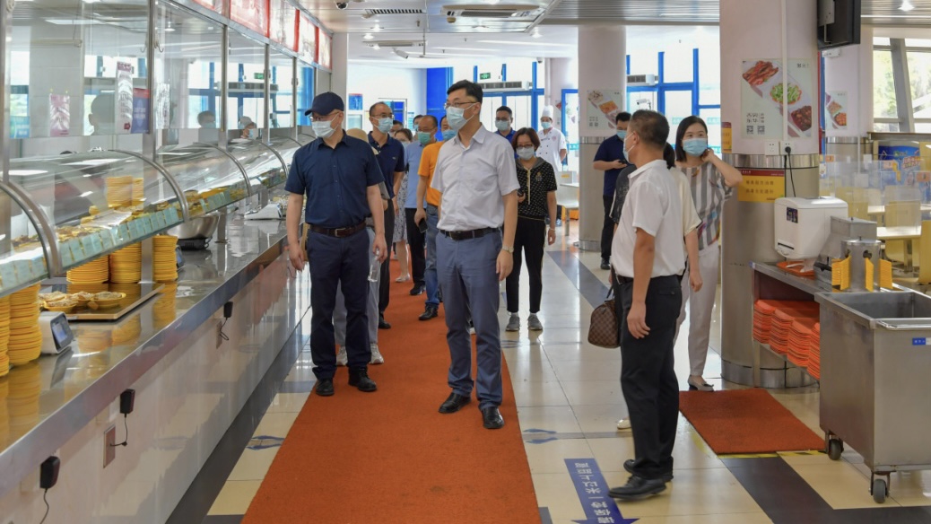 校領導一行實地走訪校門、教師之家和東大招待所留觀點、食堂、學生宿舍、大學生活動中心、在建工地、教學樓、相關學院、實驗室、校醫院、保衛處、圖書館、體育館等校園重點場所,認真檢查學校疫情防控、教學設施、安全保衛、宿舍修繕、環境整治、軍訓場所等方面的開學準備工作。