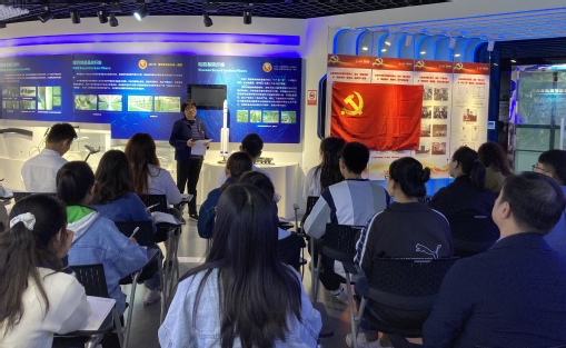 會后,蔣宏潮還參加了材料學院21級學碩第一黨支部開展的“弘揚偉大建黨精神,加快推進科技自立自強”主題黨日活動,上海市“雙帶頭人”教師黨支部書記、材料學院碳纖維團隊帶頭人陳惠芳以“逐夢百年正風華,接續奮斗正青春”為主題為學生黨員帶來了一堂沉浸式微黨課。
