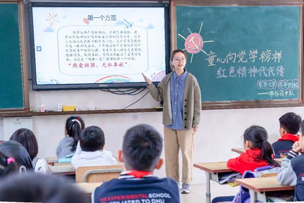 本學期重點圍繞“兩彈一星精神”、“改革開放精神”等開展授課。近期,13名研究生再次走進東華大學附屬實驗學校實體課堂為中小學生講授黨的發展歷程中前輩們如何攻堅克難、頑強拼搏、自力更生、開拓創新、勇于擔當,不斷取得輝煌業績,激發中小學生們愛國報國、勇攀高峰的精神品格。