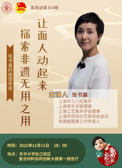 講座講述張書嘉的面塑傳奇,以及非遺創(chuàng)業(yè)路。傳統(tǒng)手工注入更有想象力的跨界合作再創(chuàng)造,探索出一條非遺時尚傳播之路。從一個十幾平的小工作室開始,慢慢進入了社區(qū)、學校、商圈。結合自己長達近30年的面塑制作經(jīng)驗,她打破了傳統(tǒng)師傅帶徒弟的教學方式,更多以“非遺+”概念將傳統(tǒng)手工和現(xiàn)代需求相結合,非遺面塑+創(chuàng)意故事、表達力、藝術心理等。并不斷嘗試作品的跨界合作,如非遺面塑飾品、非遺面塑動畫、非遺面塑MV。對面塑未來的發(fā)展,她希望大家不要把傳統(tǒng)藝術當做只能在櫥窗里遠觀的事物,而是對動手能力和思維方式的一種寶貴的補充。通過講座,讓學生了解張書嘉“非遺”這條創(chuàng)業(yè)路。