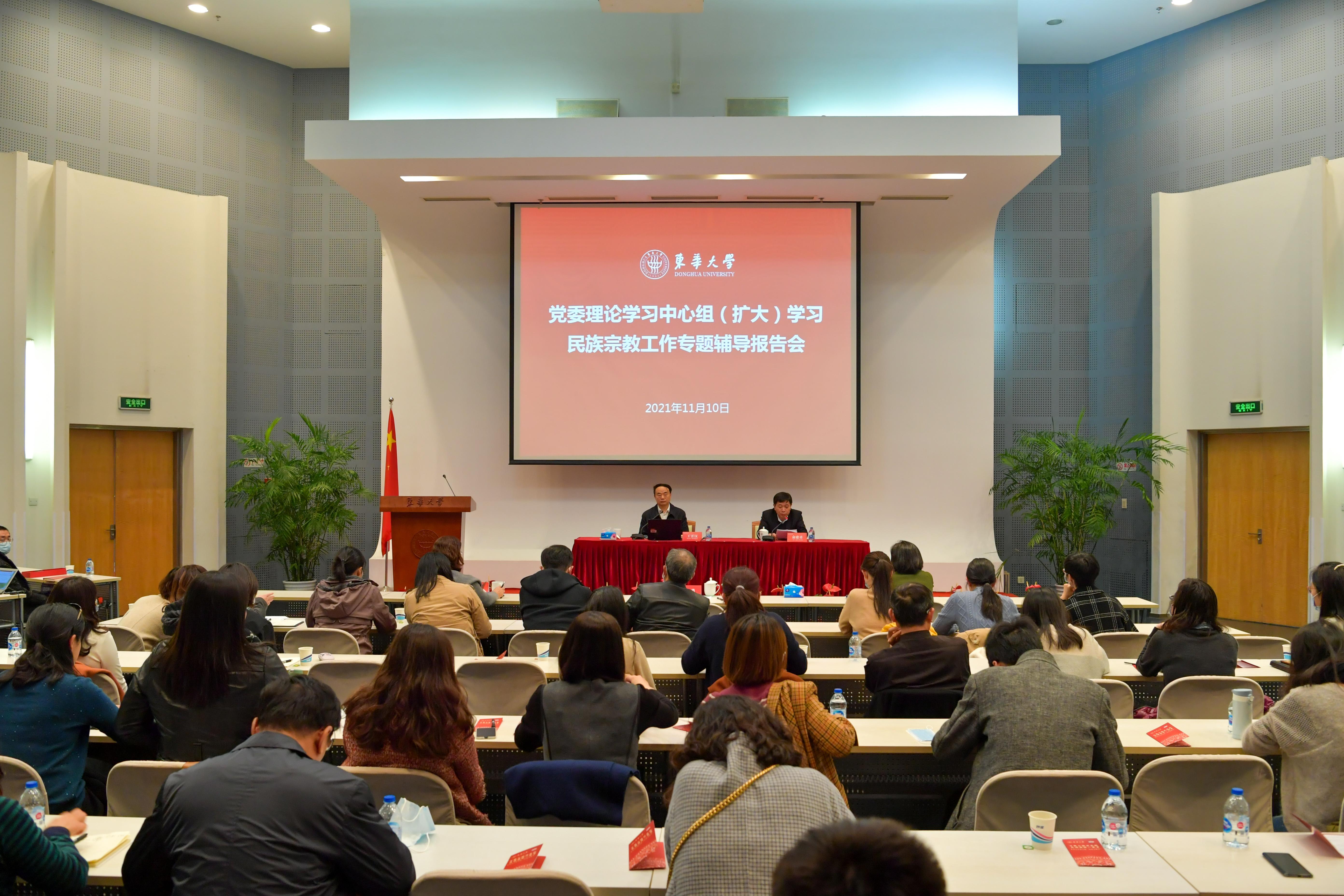 11月10日,學校在松江校區舉行黨委理論學習中心組(擴大)學習會,邀請上海市委統戰部副部長、上海市民族和宗教事務局黨組書記王霄漢作題為“黨的民族宗教政策——學習習近平總書記民族宗教工作重要論述”的專題輔導報告。校長俞建勇,黨委副書記崔運花,副校長李煒出席會議。俞建勇主持學習會。