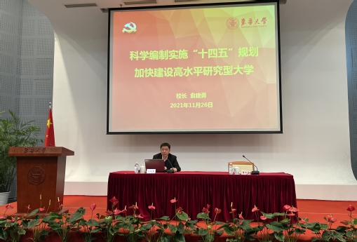 為堅持黨建引領,進一步以學校事業發展遠景藍圖推動全校教職工為建成“國內一流、國際有影響,有特色的高水平研究型大學”目標而奮斗,11月26日,校長俞建勇在松江校區為學?;鶎狱h員骨干作“科學編制實施‘十四五’規劃 加快建設高水平研究型大學”專題輔導報告,報告由黨委副書記崔運花主持。