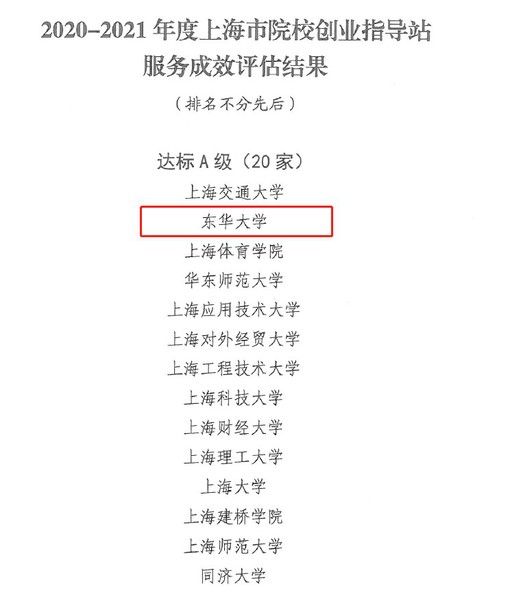 日前,上海市就業促進中心、上海市學生事務中心公布2020-2021年度上海市院校創業指導站服務成效評估結果,我校創業指導站獲評A級。