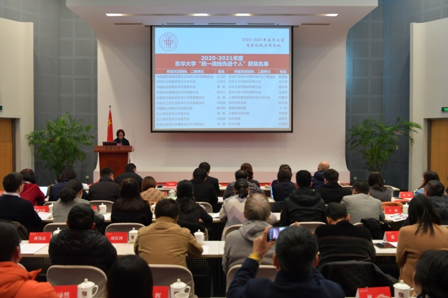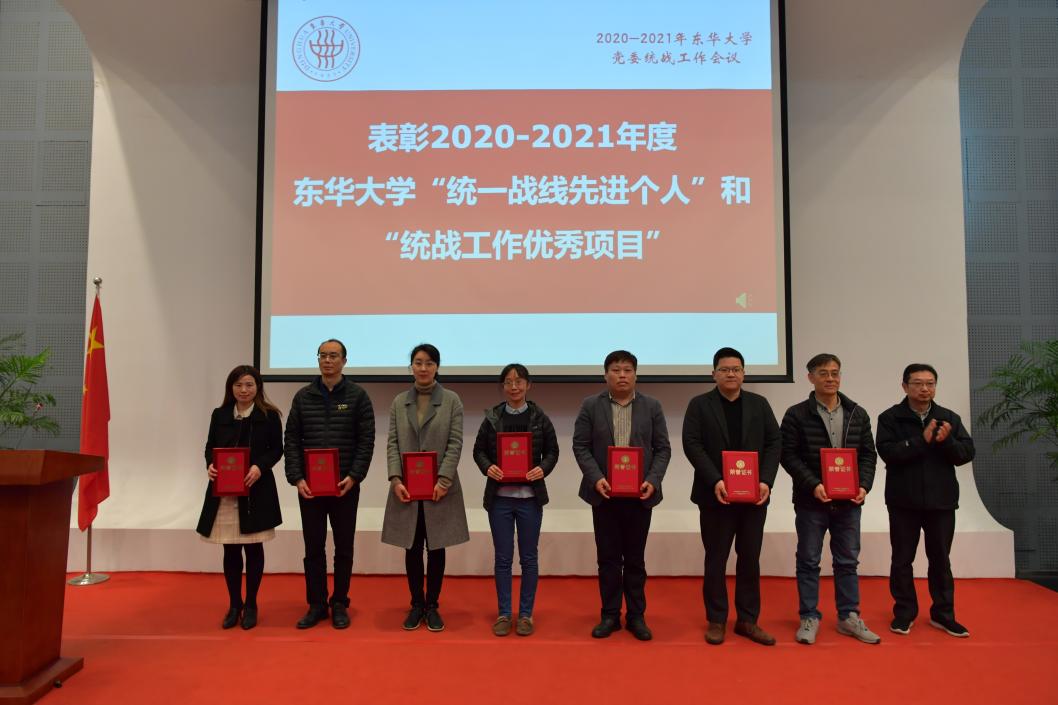 會上,劉淑慧宣讀了2020—2021年東華大學(xué)“統(tǒng)一戰(zhàn)線先進個人”和“統(tǒng)戰(zhàn)工作優(yōu)秀項目”名單。王宏志等15名黨派團體成員、陳志剛等5名統(tǒng)戰(zhàn)干部獲評統(tǒng)一戰(zhàn)線先進個人;管理學(xué)院黨委“家在華陽”等5個統(tǒng)戰(zhàn)工作項目獲評優(yōu)秀項目。