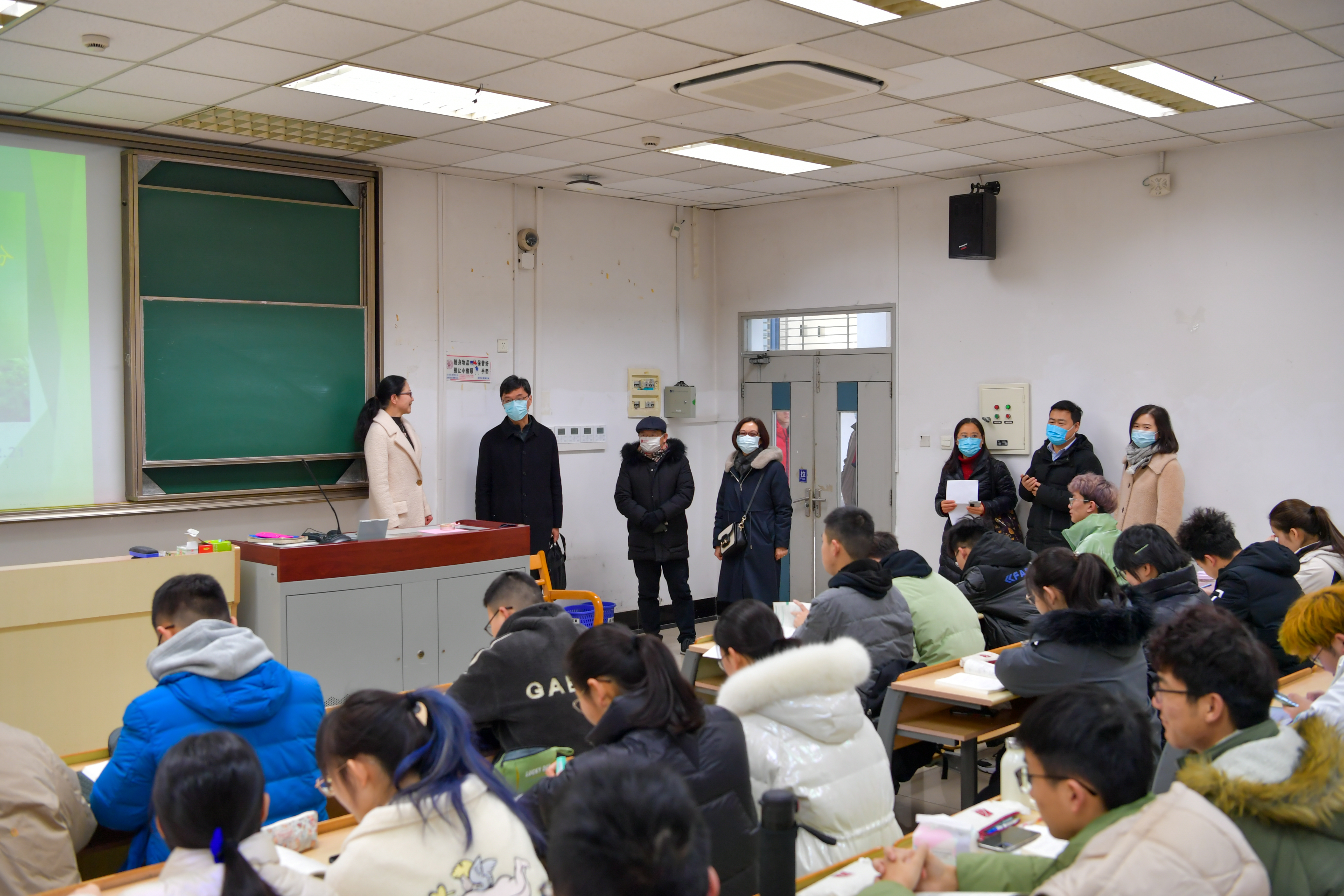 學校相關部門及學院的負責人也一同來到教學樓察看課堂情況。據悉,本學期學校面向本科生開設2864門次課程,研究生開設599門次課程。