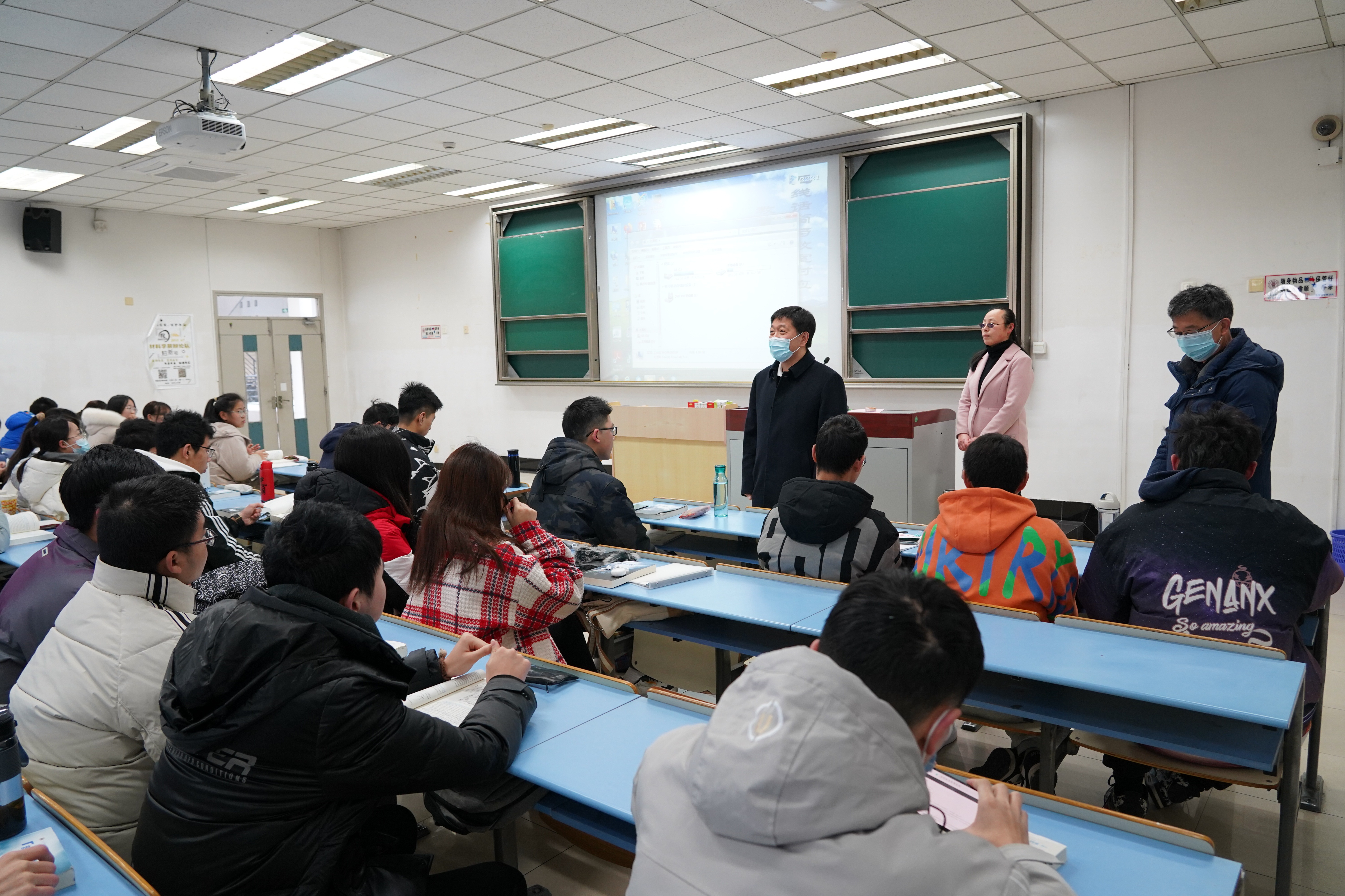 2月21日是新學期教學周的第一天,黨委書記劉承功、校長俞建勇、黨委副書記劉淑慧、副校長舒慧生等早早來到松江校區教學樓檢查開學第一課教學情況,并在課前與師生親切交流。