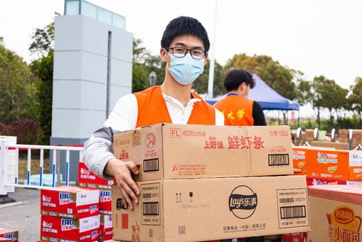 (輔導員組織學生分發物資)