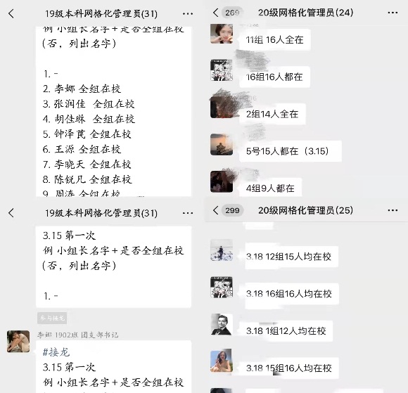 學(xué)院堅(jiān)持把疫情防控作為當(dāng)前最重要政治任務(wù),優(yōu)化學(xué)院疫情防控工作小組,多次召開(kāi)在線(xiàn)會(huì)議,抓細(xì)抓實(shí)學(xué)校各項(xiàng)疫情防控工作要求。向?qū)W院全體師生黨員發(fā)出號(hào)召,各黨支部積極組織開(kāi)展“亮身份亮行動(dòng)亮作為,共筑紡院疫情‘紅色防線(xiàn)’”主題黨日活動(dòng),深入學(xué)習(xí)近期習(xí)近平總書(shū)記關(guān)于新冠肺炎疫情防控相關(guān)重要講話(huà)精神、偉大抗疫精神,認(rèn)真學(xué)習(xí)《致東華大學(xué)各級(jí)黨組織和廣大師生黨員的一封信》,及時(shí)統(tǒng)一思想認(rèn)識(shí),引領(lǐng)廣大師生黨員充分發(fā)揮模范帶頭作用,積極投身抗疫一線(xiàn)工作。學(xué)生工作辦公室第一時(shí)間全員進(jìn)校到崗,迅速進(jìn)入狀態(tài),率先成立學(xué)生疫情防控網(wǎng)格化管理小組,組建班長(zhǎng)、學(xué)生黨員骨干等核心管理隊(duì)伍,掌握學(xué)生實(shí)時(shí)狀態(tài),了解學(xué)生實(shí)際困難,在精準(zhǔn)落實(shí)中提升“關(guān)懷溫度”。