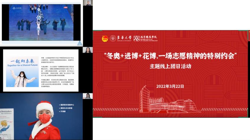 3月22日,我校團委聯合北京服裝學院團委開展“一場志愿精神的特別約會”線上主題團日活動。多位來自冬奧會、進博會、花博會的青年志愿者相聚交流,700余名團員青年線上參加,京滬兩地團員青年“云連線”,暢談志愿服務的點滴感動與團員青年的責任擔當。