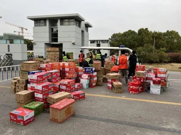 (兩校區(qū)門崗安保人員協(xié)助轉運物資)