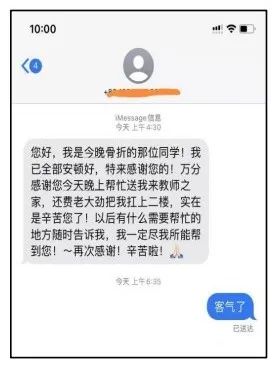 (受傷同學發(fā)來的感謝短信)