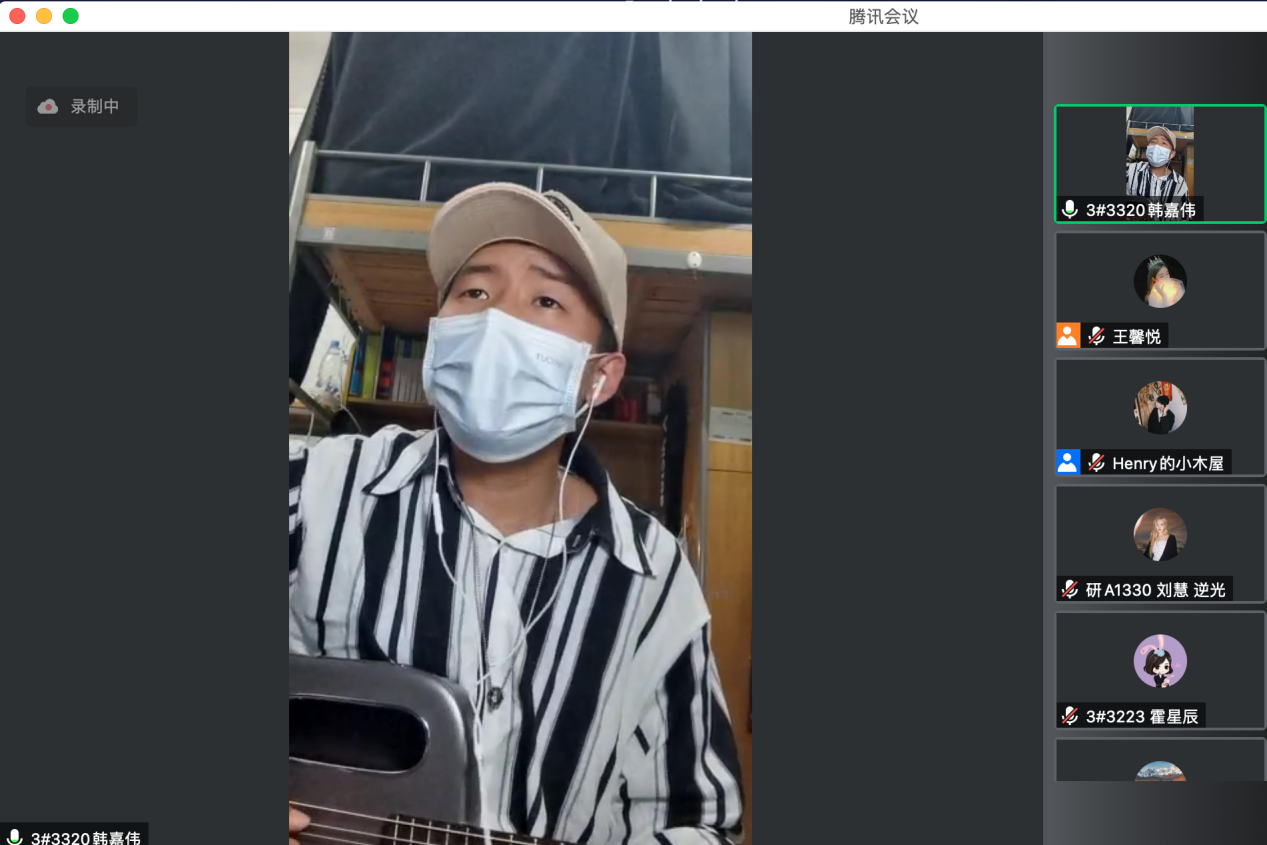 人文學(xué)院研究生韓嘉偉帶來(lái)一首網(wǎng)絡(luò)流行歌曲改編《漠河舞廳》(戰(zhàn)疫版)。他說(shuō),“每一位‘大白’和我們一樣,都是普普通通的人,都有思念、掛念,我想用這首歌向他們表達(dá)一份敬意!”