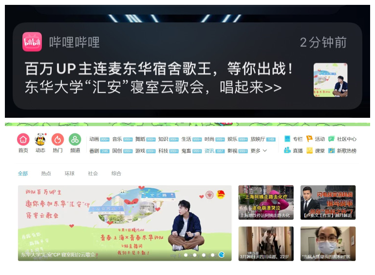 百萬(wàn)校園B站up主當(dāng)主持、室友齊報(bào)名獻(xiàn)唱、寢室傳來(lái)吉他彈唱……4月3日晚,東華大學(xué)被溫暖的聲音包圍,長(zhǎng)達(dá)90分鐘的寢室云歌會(huì)兩校區(qū)隔空連線對(duì)唱,為疫情期間“宅”校的大學(xué)生鼓氣打勁。活動(dòng)通過(guò)B站“青春上海”與“青春東華”聯(lián)合直播間播出,6.5萬(wàn)人次師生同時(shí)在線觀看。