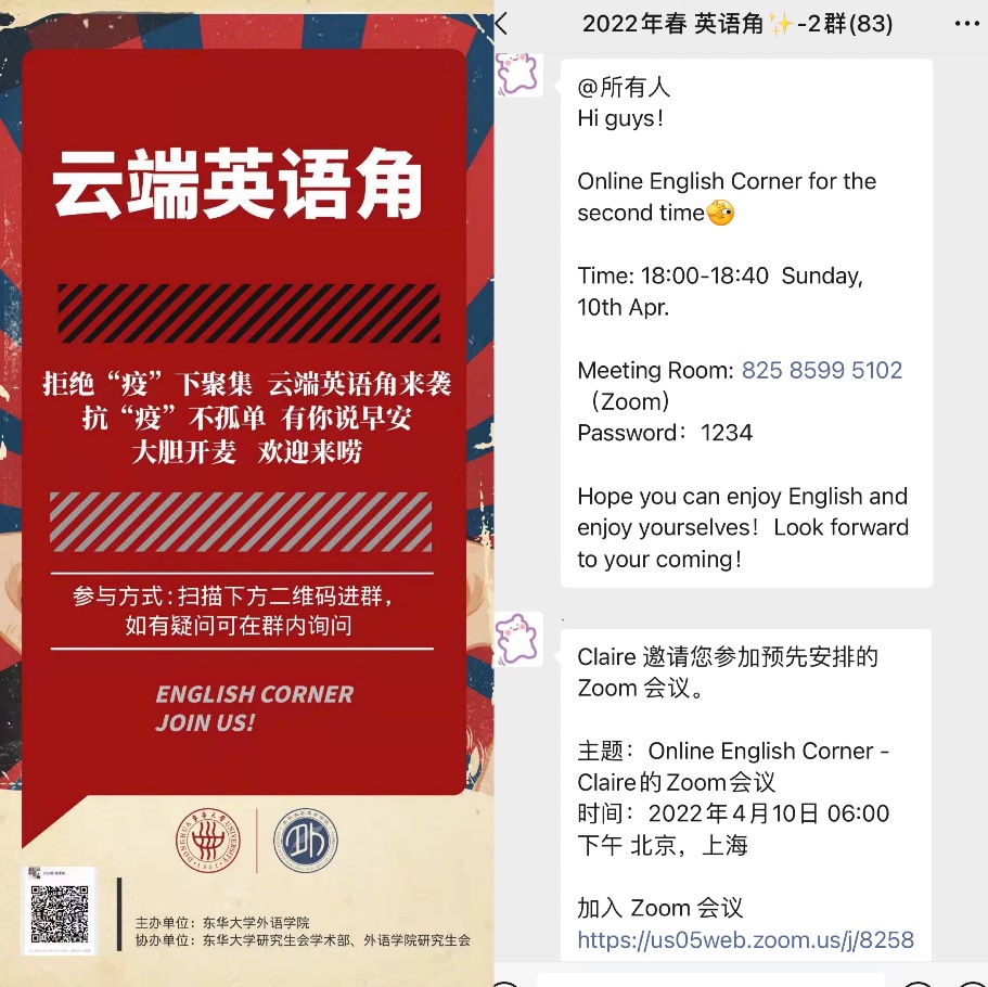 “志存高遠,做有抱負的有志青年;勇毅前行,做有擔當?shù)臅r代新人”,這是外語學院2019級研究生線上“畢業(yè)大課”的主題。在學院圍繞“戰(zhàn)疫”主題所開展的系列思政教育工作中,這堂精彩的畢業(yè)大課只是其中一部分,還為畢業(yè)生提供最大化便利和幫助;充分解讀校園安全管控政策,指導學生制定線上學習計劃,制作暖心小貼士拒絕emo;及時捕捉青年興趣點,拍攝“東華外院人的一天”等系列視頻,云端分享校園生活點滴;學生黨支部發(fā)起“環(huán)保用餐,‘疫’不容辭”倡議,杜絕糧食浪費、白色污染,自翻自唱中英日語抗疫手勢舞、“跟著節(jié)氣學外語”等活動,及時補位線下校園文化活動;依托易班發(fā)起戰(zhàn)“疫”網(wǎng)絡文化征集令、“善愛同行,筆心美好”心理健康教育活動周,陸續(xù)推出戰(zhàn)“疫”心理知識小課堂,號召青年學生正視挫折、勇敢成長。