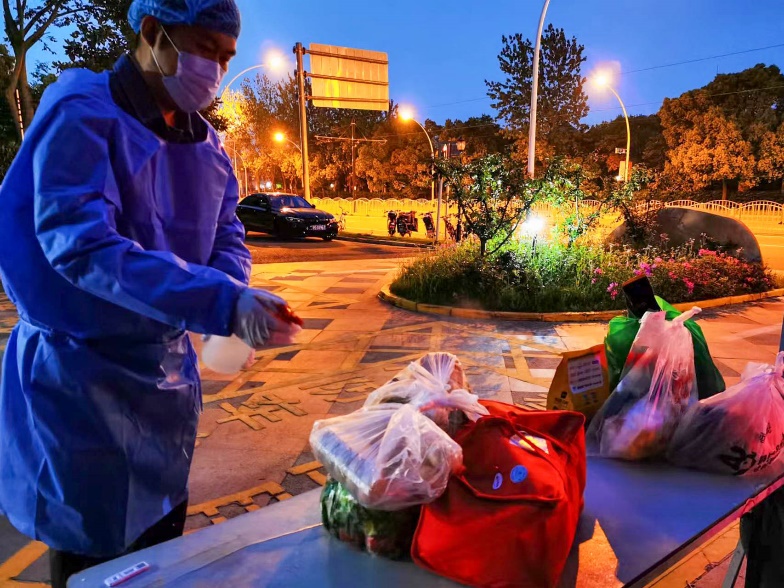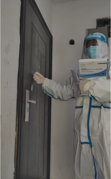 羅理達(dá)作為樓棟服務(wù)組志愿者上門發(fā)放防疫物資