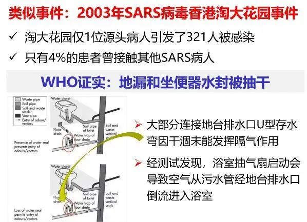 對比分析SARS香港淘大花園事件,深入淺出講授建筑排水系統在 “阻斷病毒通過氣溶膠傳播” 方面重要性