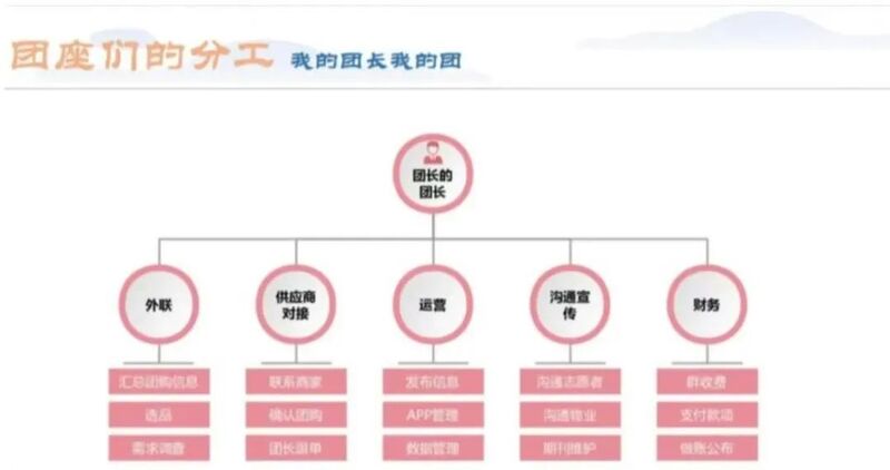 “社區團購可以看作是一個工程,團購的參與人員可以看作是工程的六大部門,包括外聯部(收集居民剛性需求、提出采購計劃)、供應商對接(篩選供應商資、鑒定貨品內容和供貨時間)、運營部(進行團購數據處理、生成團購訂單)、溝通宣傳部(與物業和志愿者溝通團購進展、動態、安全注意事項)、財務部(核對訂單數據、付款及記賬)、物資部(組織志愿者分發物資)。”