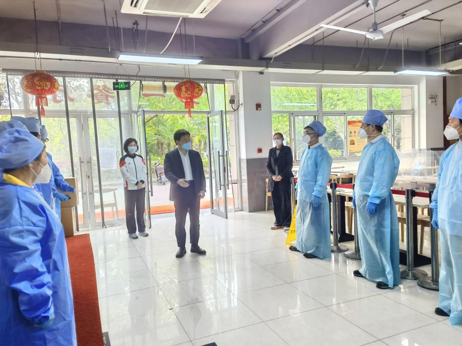 俞建勇還來到校門口、食堂、校醫院、后勤服務中心、隔離點等場所,向堅守崗位工作人員的辛勤付出和努力表示敬意和感謝。他指出,疫情防控以來,各項工作時間緊、任務重,大家在各自崗位上恪盡職守、不辭辛勞、日夜奮戰,為守護校園安全和師生健康提供了堅實有力保障,為打贏校園疫情防控攻堅戰作出了重要貢獻。他叮囑大家一定要注重加強個人防護、注意勞逸結合,并鼓勵大家繼續發揚偉大的抗疫精神,再接再厲、戳力同心,以堅定的信心和決心,堅決打贏疫情防控這場大仗硬仗。
