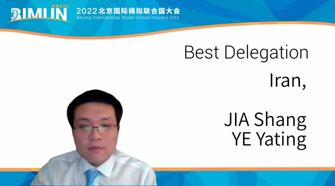 (我校模聯代表團榮獲2022北京國際模擬聯合國大會“杰出代表團”)