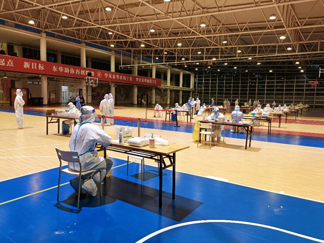 “東華園里,除了為核酸檢測服務的志愿者,很多老師還投身到送餐志愿者、宿舍樓外志愿者、宿舍駐樓志愿者、食堂秩序維護志愿者、校園秩序維護志愿者、教師網格樓內志愿者、物資搬運志愿者、學生返鄉離校發車志愿者等十大類不同的志愿者崗位。”學校教師志愿者工作的負責人之一、黨委組織部張曉冬介紹說。