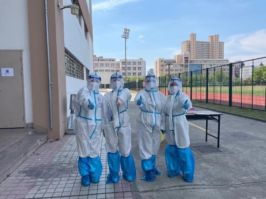 自3月份以來的疫情防控工作中,兩校區共有近500余名教師志愿者主動踴躍報名參加志愿者服務,各類志愿者“全天候”輪流上崗,累計上崗次數超過1.3萬人次。他們為維護校園師生平安,共同打贏大上海保衛戰作出貢獻和努力。他們在關鍵時刻盡責有擔當,重要關頭第一時間行動詮釋忠誠。當他們穿上防護服的瞬間,就是穿上了“戰袍”,走上了沒有硝煙的戰場。因為有他們,所有的等待與付出,化作了希望和最后勝利的喜悅。