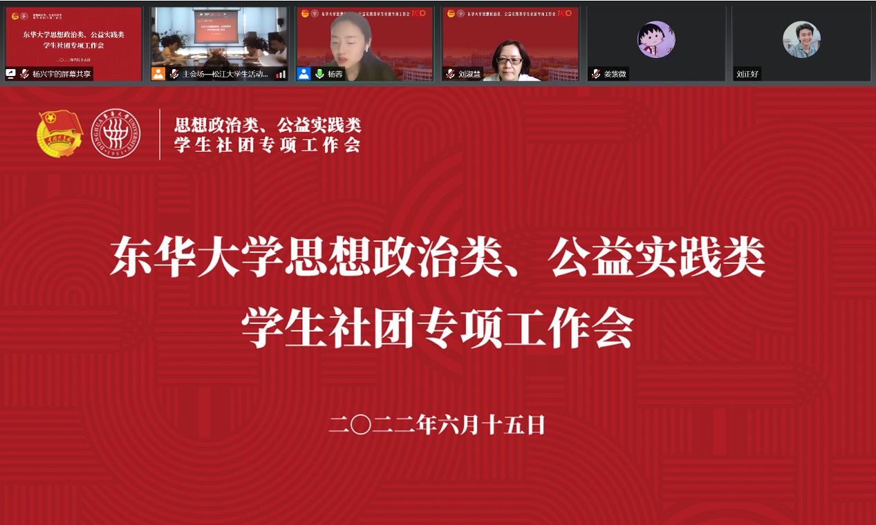 6月15日,東華大學(xué)思想政治類、公益實(shí)踐學(xué)生社團(tuán)專項(xiàng)工作會通過線上線下相結(jié)合的形式舉行。黨委副書記劉淑慧出席會議,學(xué)生社團(tuán)工作委員會成員單位負(fù)責(zé)人,相關(guān)學(xué)院黨組織(副)書記、團(tuán)組織書記,思想政治類、公益實(shí)踐類學(xué)生社團(tuán)指導(dǎo)教師、學(xué)生負(fù)責(zé)人參加會議。