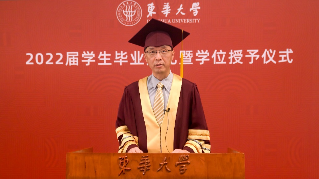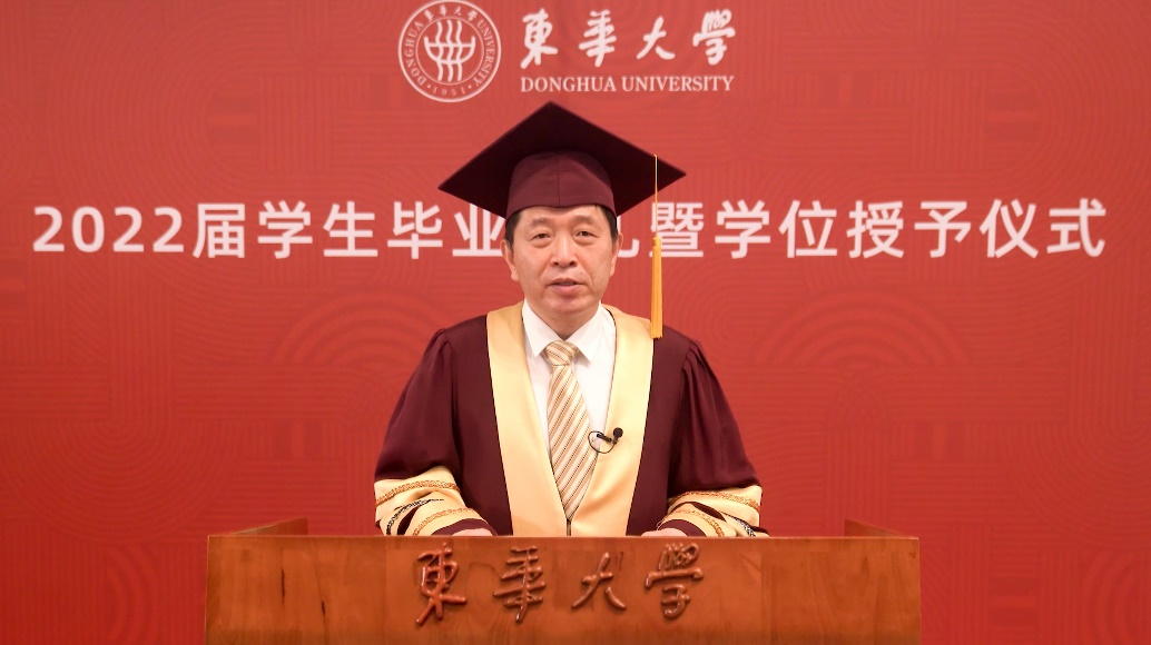 親愛的同學(xué)們,六月的上海,梔子花開,畢業(yè)的驪歌再次響起。我們告別在鮮花怒放的盛夏,也許今天這場云上典禮因沒有現(xiàn)場撥穗而顯得不夠完美,但它承載的祝福與期盼依舊。此去經(jīng)年,希望大家記住這個春天的溫暖與感動,帶著東華給予你的涵養(yǎng)、學(xué)識、修為和品格,牢記國家賦予我們青年一代的使命和責(zé)任,勇敢去拼,放心追夢!