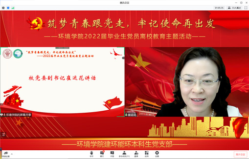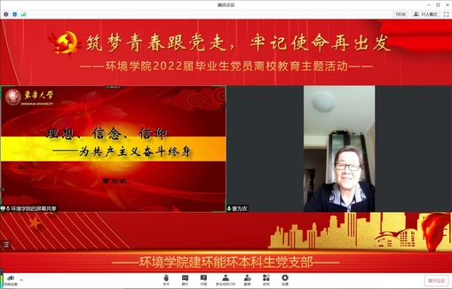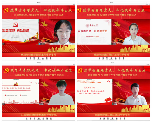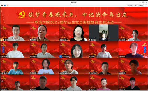為深入學習貫徹習近平總書記在慶祝中國共產主義青年團成立100周年大會上的重要講話精神,引導和鼓勵廣大畢業生黨員堅定理想信念,發揮好黨員先鋒模范作用。6月23日,環境學院建環能環本科生黨支部在線開展“筑夢青春跟黨走,牢記使命再出發”為主題的畢業生黨員離校教育主題黨日活動。黨委副書記崔運花,校關工委講師團曹為農,環境學院黨委書記劉建樹、黨委副書記王麗華及全體畢業生黨員參加。本次活動由黨支部書記孟侖主持。