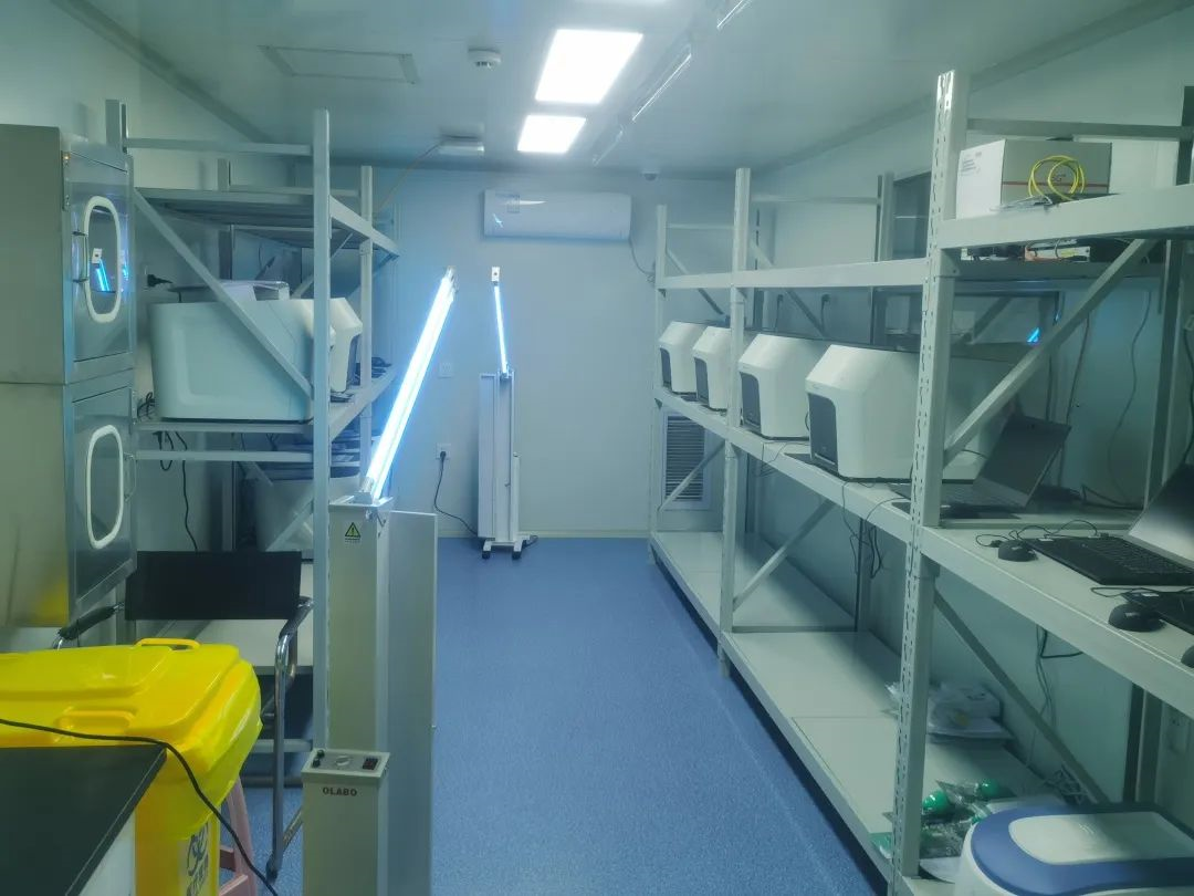 形似小方艙的校園PCR實(shí)驗(yàn)室,總面積達(dá)570平方米,其中核心PCR實(shí)驗(yàn)室面積為108平方米,其余為耗材倉庫、辦公區(qū)及普通實(shí)驗(yàn)室等。該實(shí)驗(yàn)室設(shè)置3個帶獨(dú)立緩沖的標(biāo)準(zhǔn)PCR分區(qū),以及獨(dú)立污物通道區(qū),并設(shè)置獨(dú)立的人流、物流及污物流通道。