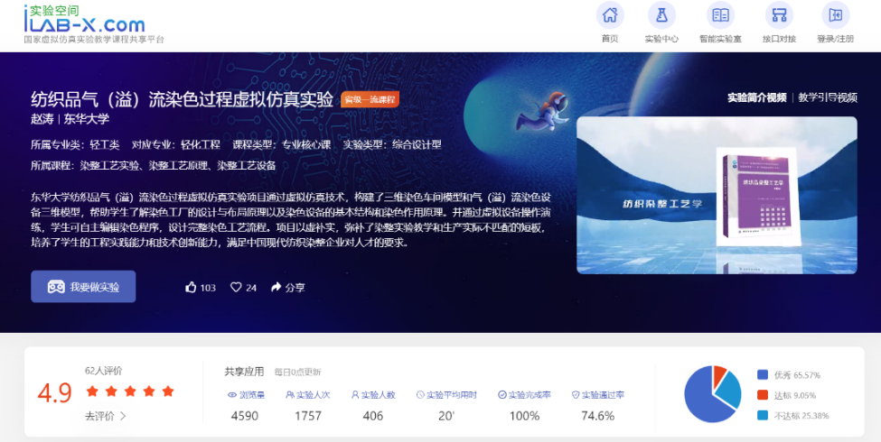 “現在上海可供學生實習實踐的印染廠并不多,實驗室受條件限制,缺乏最新或大型設備。”為了讓學生掌握實際生產的染整工藝流程,趙老師在國家虛擬仿真實驗教學課程共享平臺上線了相關課程,通過聯系設備公司、印染廠和軟件公司,將實驗室沒有的大設備、最新工藝等搬進虛擬仿真實驗,構建染色設備三維模型,學生通過組合設備、選擇染色工藝,身臨其境一站式學習體驗染色工廠生產及染色設備的工作原理,自主編輯染色程序,設計完整染色工藝。趙濤認為,“教材是人才培養的鑰匙,好教材能有效激發學生的科學思維與學習潛能。”十四五期間,他將結合當代學生的特點以及最新應用技術和研究成果,繼續更新完善現有教材。“有機會將在新形態教材上發力。錄制更多教學和實驗視頻,通過掃碼觀看的形式,讓學生們沉浸式學習,近距離實踐。”