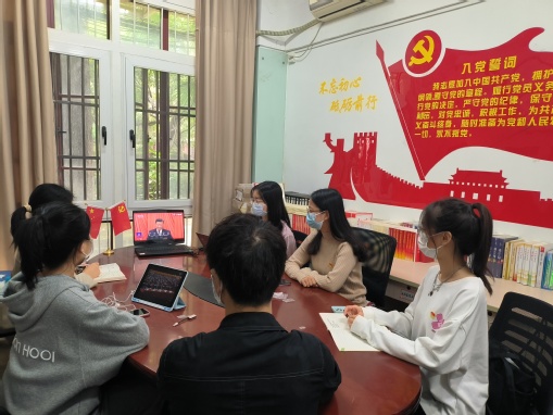 管理學院黨委組織黨員師生代表、民主黨派代集體收看學習黨的二十大開幕會,黨政班子、黨委委員、黨支部書記帶頭交流學習體會