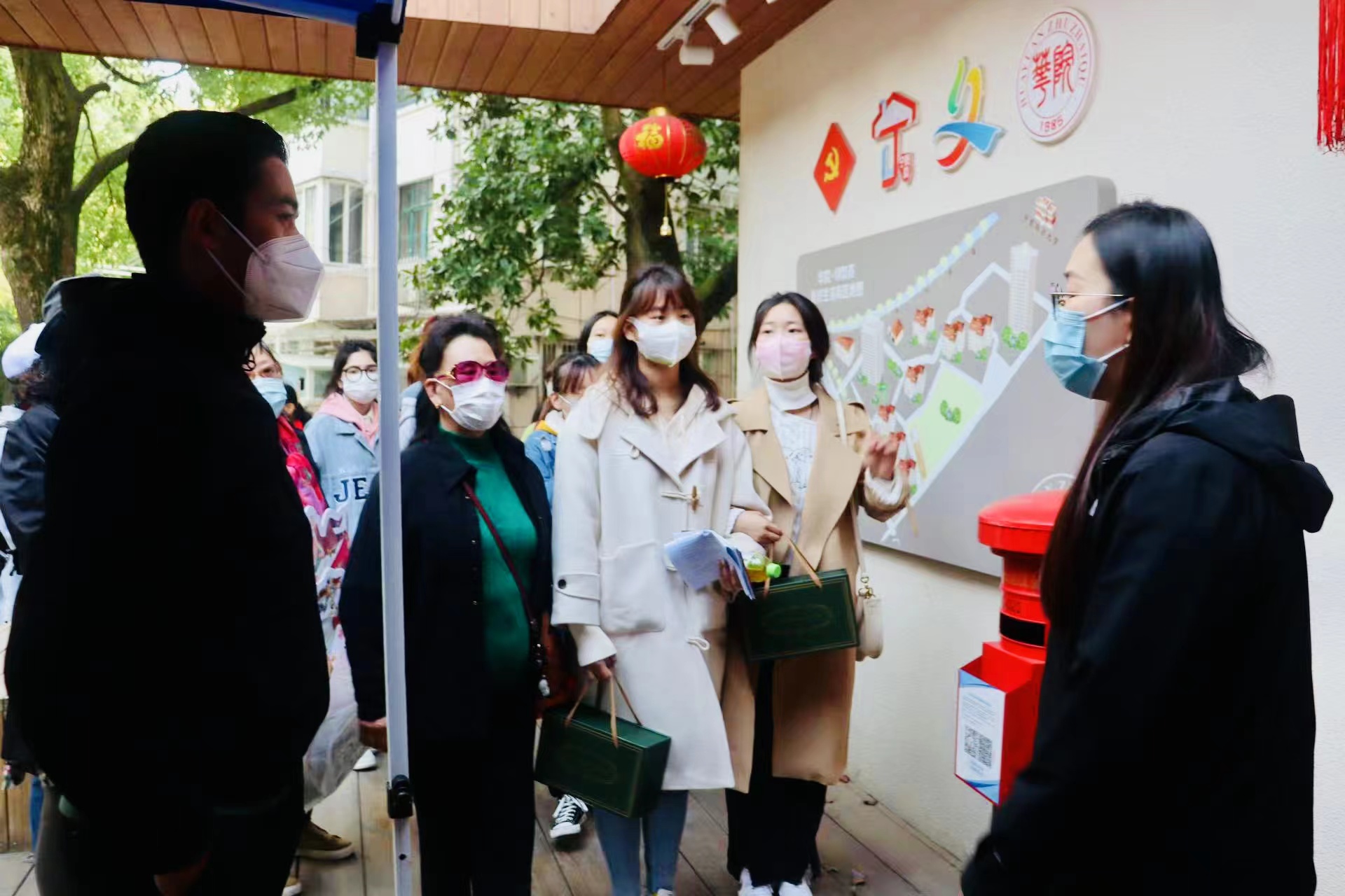 (東華大學師生和華陽路街道居民一起參觀社區建設)