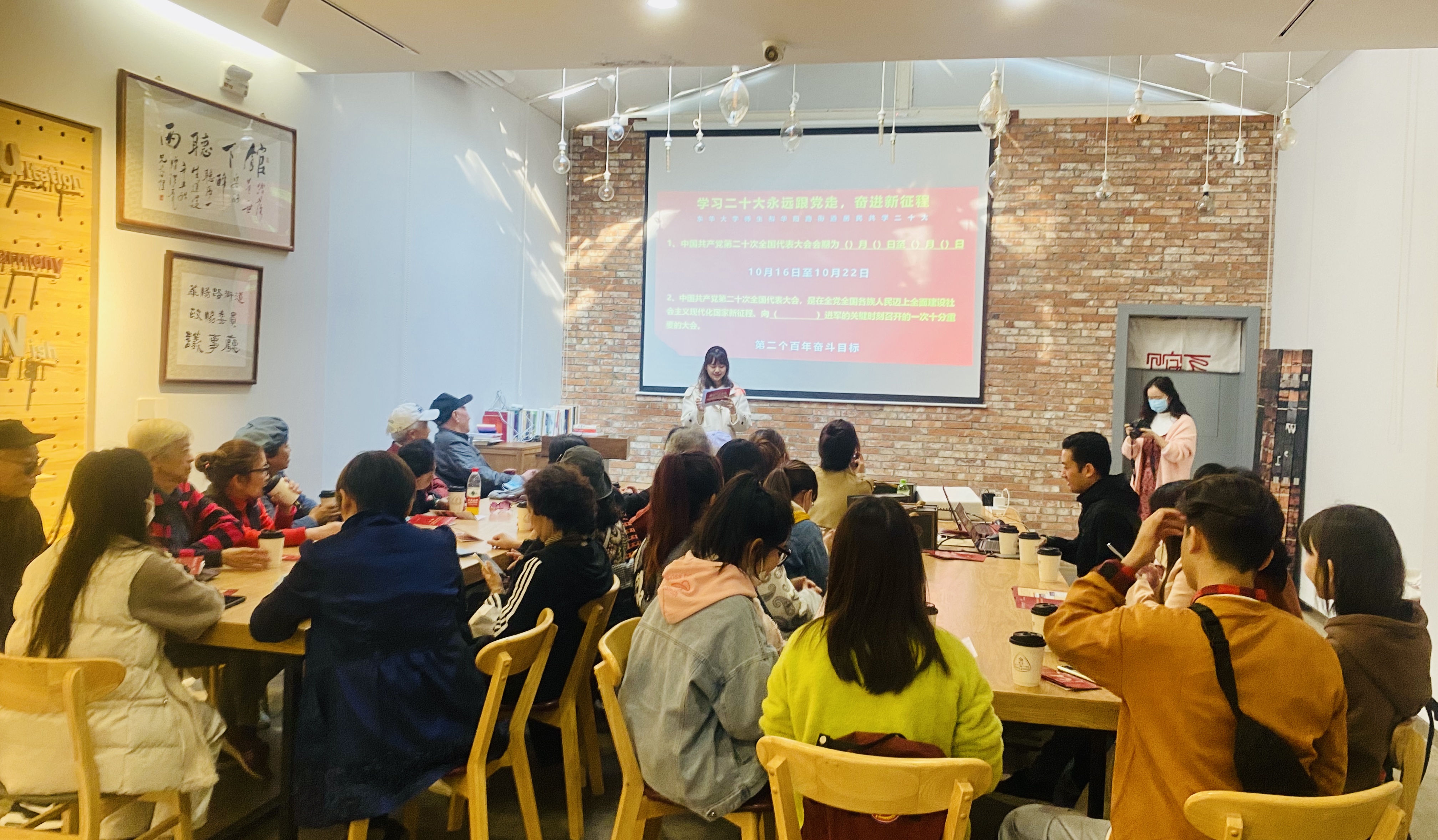 (東華大學師生和華陽路街道居民共同學習黨的二十大精神)