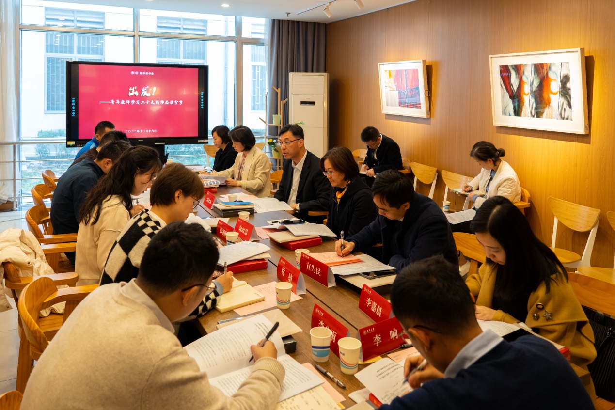 11月16日上午,在黨的二十大隆重開幕一個月之際,一場生動熱烈的品讀分享活動在松江校區(qū)教工之家舉行。來自不同單位、不同崗位的十位“青椒”圍坐在方桌旁,手中捧著黨的二十大報告原文,不停翻閱圈點,謄寫筆記,聆聽彼此的體悟和思考。