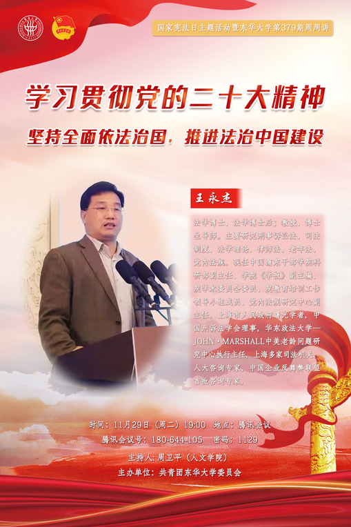 講座題目:學習貫徹黨的二十大精神:堅持全面依法治國,推進法治中國建設
