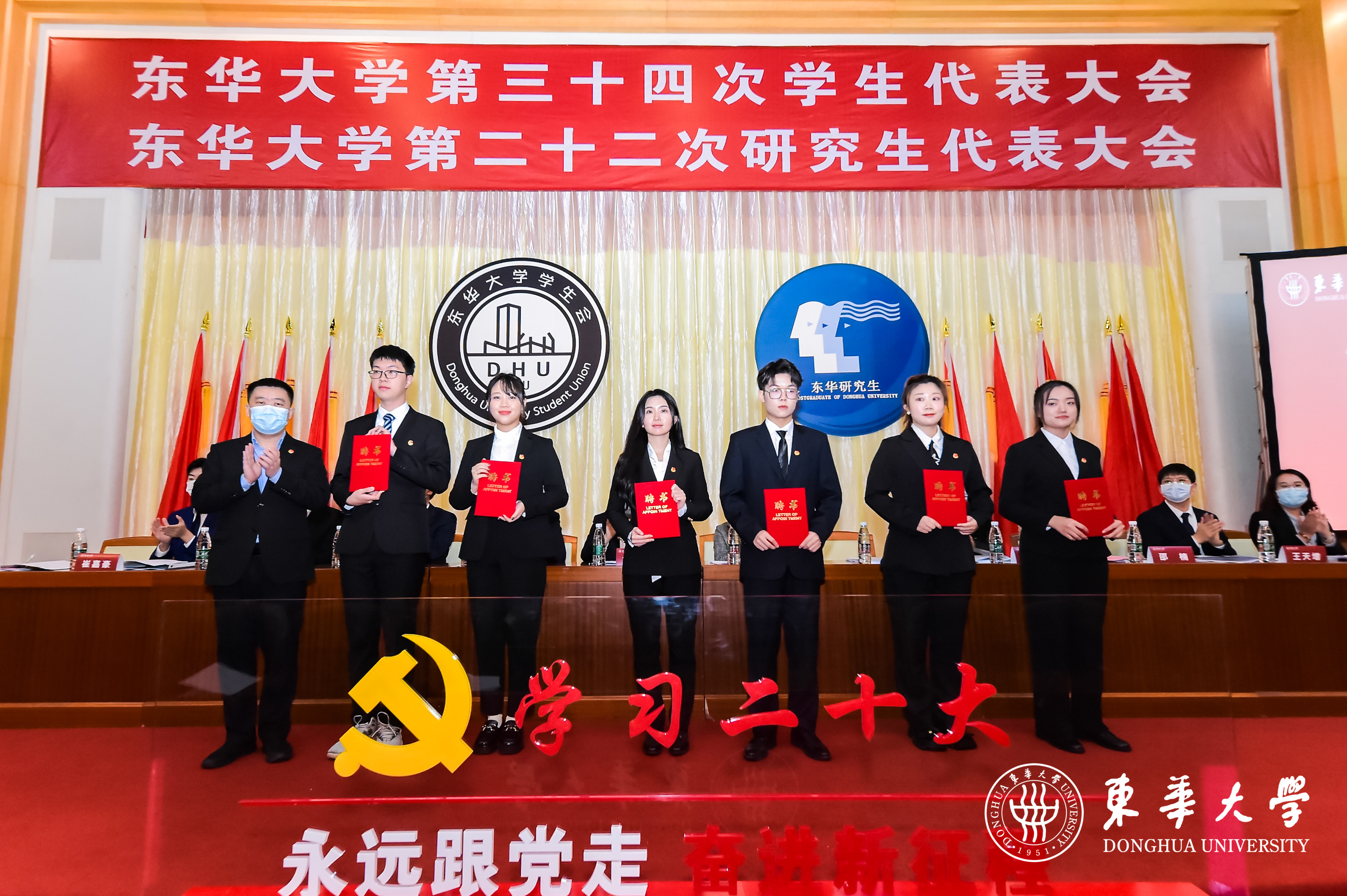 會上,劉淑慧、舒慧生分別為星級學生會、星級研究生會獲獎學院頒獎。任浡為“黨的二十大精神上海青年師生宣講聯盟·東華大學團學骨干宣講團”成員代表頒發聘書。