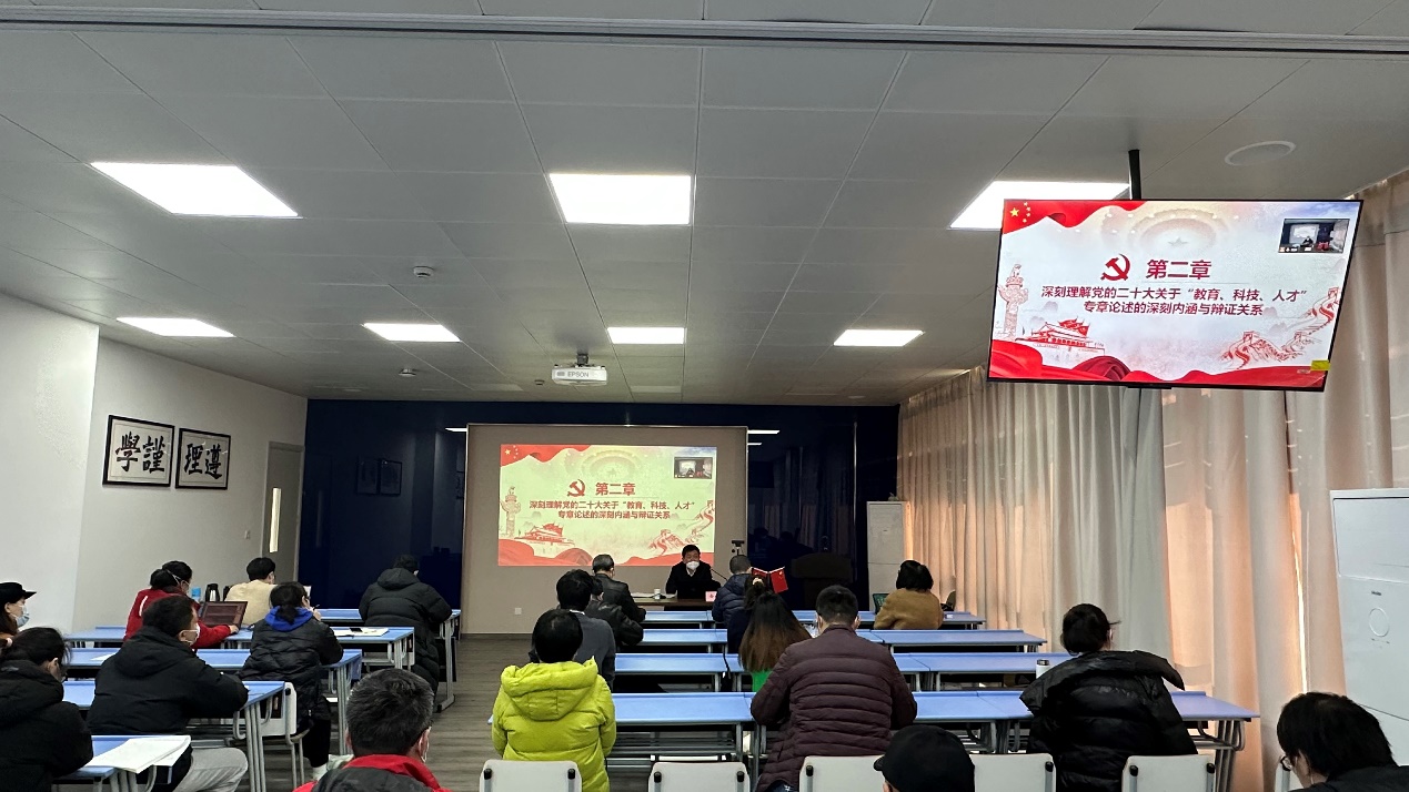 俞建勇從學(xué)習(xí)領(lǐng)會黨的二十大深刻內(nèi)涵和重大意義、深刻理解黨的二十大關(guān)于教育科技人才專章論述的深刻內(nèi)涵與辯證關(guān)系以及結(jié)合學(xué)校實際全面貫徹落實黨的二十大精神等三個方面對黨的二十大提出的重要論述和戰(zhàn)略部署進(jìn)行了全面系統(tǒng)又重點突出的輔導(dǎo)解讀。他指出,黨的二十大“事關(guān)黨和國家事業(yè)繼往開來,事關(guān)中國特色社會主義前途命運,事關(guān)中華民族偉大復(fù)興”,全面準(zhǔn)確學(xué)習(xí)領(lǐng)會黨的二十大精神,必須深刻領(lǐng)悟黨的二十大關(guān)于黨和國家事業(yè)發(fā)展的歷史邏輯、理論邏輯和實踐邏輯,要深刻領(lǐng)會黨的二十大的鮮明主題、深刻領(lǐng)會過去五年和新時代十年偉大變革的重要意義、深刻領(lǐng)會新時代中國特色社會主義思想的世界觀和方法論、深刻領(lǐng)會以中國式現(xiàn)代化推進(jìn)中華民族偉大復(fù)興的使命任務(wù)、深刻領(lǐng)會以偉大自我革命引領(lǐng)偉大社會革命的重要要求。