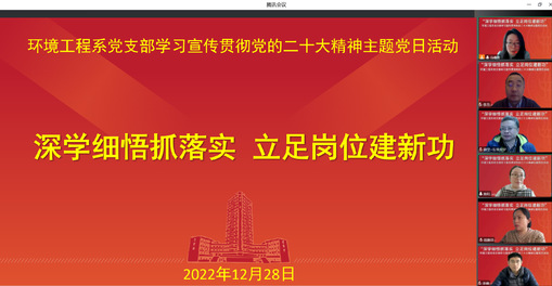 12月28日,環境工程系黨支部舉行了“深學細悟抓落實,立足崗位建新功”主題黨日活動,學習宣傳貫徹黨的二十大精神。