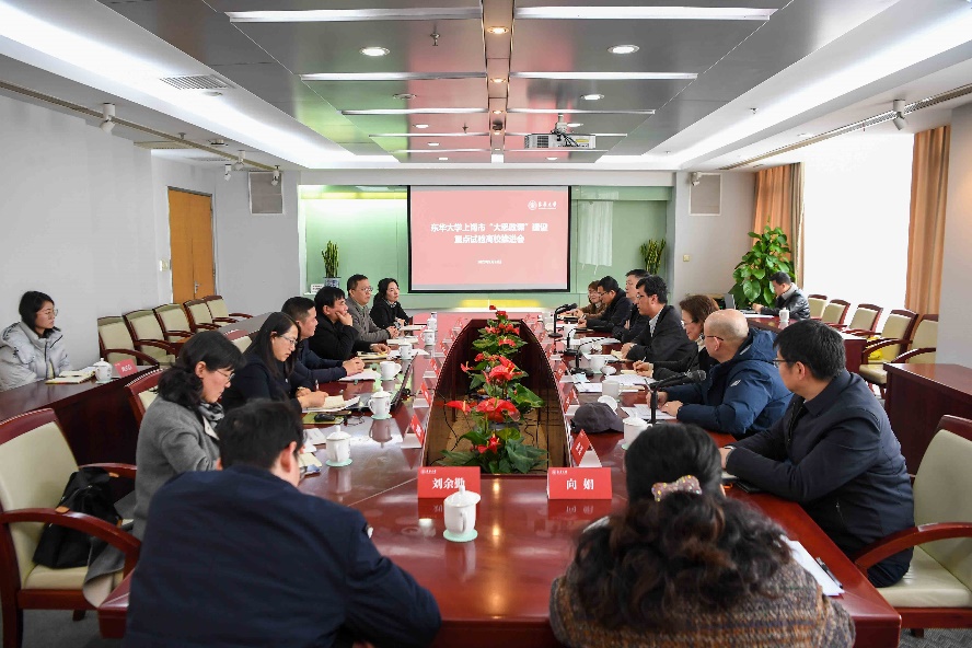 會上,我校馬克思主義學院院長王治東介紹了學校建設上海市“大思政課”建設重點試驗高校方案。瑞金中央革命根據地紀念館黨組書記周景春,上海市松江二中黨委書記、校長俞金飛,東華大學附屬實驗學校校長周衛斌,國防大學政治學院馬克思主義理論系副主任許恒兵,以及我校黨委宣傳部部長任曉杰、教務處處長楊旭東、研究生院常務副院長俞昊、人文學院院長張科靜等校內外相關單位負責人圍繞“大思政課”建設進行深入交流研討。