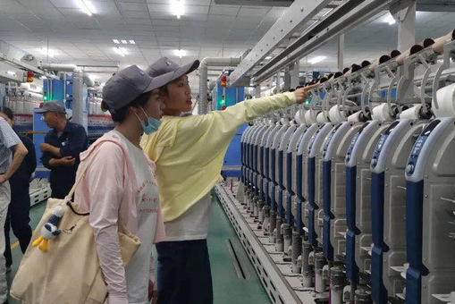 (東華大學“一帶一路”全國大學生紡織援疆團調研紡織企業生產車間)