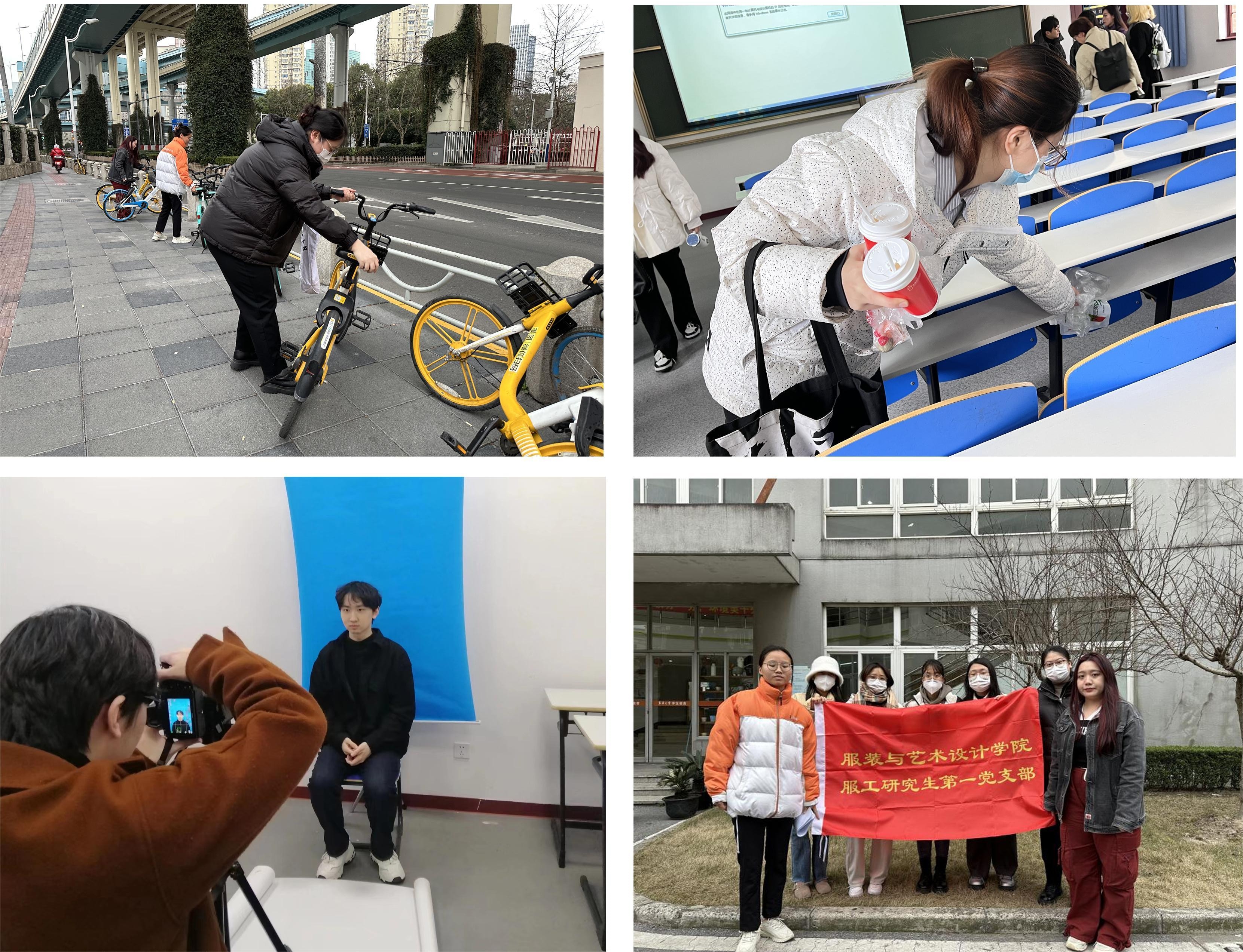 研究生各黨支部積極投身志愿服務中,打造美好文明校園。服工研究生第一、第二黨支部對校園共享單車擺放重新規劃整理,便于學生出行和騎行安全;設計學研究生第二黨支部、藝術設計研究生第二黨支部清理教室等遺留垃圾,清理校園的“白色垃圾”,點滴小事改善校園環境,營造干凈衛生的學習空間。藝術設計第一黨支部和本科學生第三黨支部聯合承辦第五屆“照‘靚’職涯——打造最美證件照”學雷鋒主題活動,解決學生“急難愁盼”問題,用專業契合學生“美”的追求。他們主動作為,積極作為,敢吃苦、肯奮斗,做好雷鋒精神的東華式表達。
