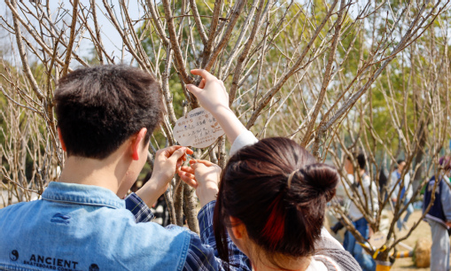 活動現場邀請了專業園藝師,為師生科普花木種植、樹木修剪、草坪維護和移植加固的專業知識,講解了關于生態環境保護的重要意義。現場熱火朝天,揮鍬鏟土、扶樹正苗、澆水培土,參加植樹活動的師生在園藝師的指導下,完成了50棵櫻花樹的種植。在勞動實踐的同時,寫下春日的寄語并認領掛牌,親手傳遞耕耘與感恩,體悟勞動的價值。